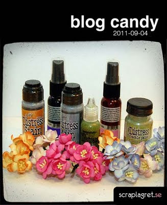 Scraplagret har plockat ihop ett jättefint kit i härliga höstfärger som hon lottar ut! Ser ut som jag behöver allt ;) Mina Cherry Blossoms behöver fyllas på och misterna och stainsen har jag inte innan! Med andra ord -Vill ha hemskt gärna!